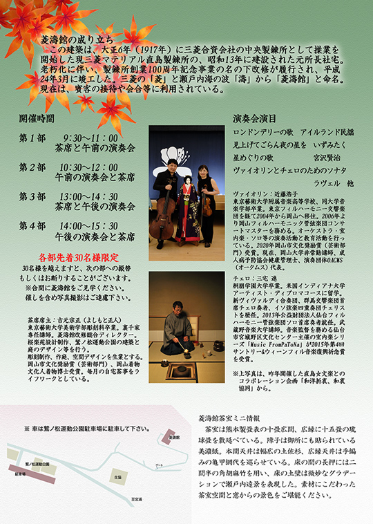 時間:第1部9:30~11:00 茶席と午前の演奏会