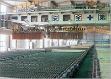 銅熔錬工場で鋳造された銅アノードを用い、銅電解精製を行ない、品位99.99%以上の電気銅を生産しています。大部分の電気銅は当社堺工場にて、型銅や線材として鋳造、加工されます。